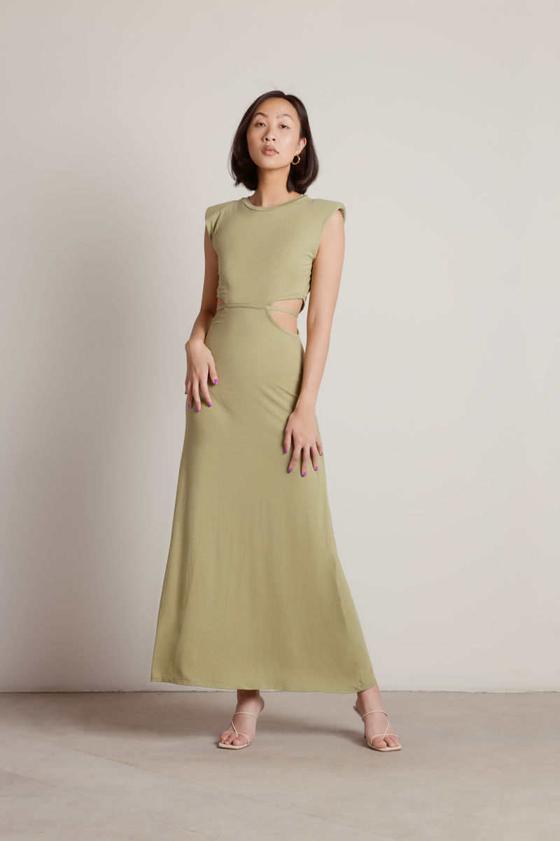 Shady Creek Padded Shoulder Cutout Maxi Dress – Green